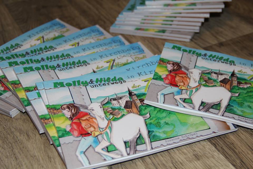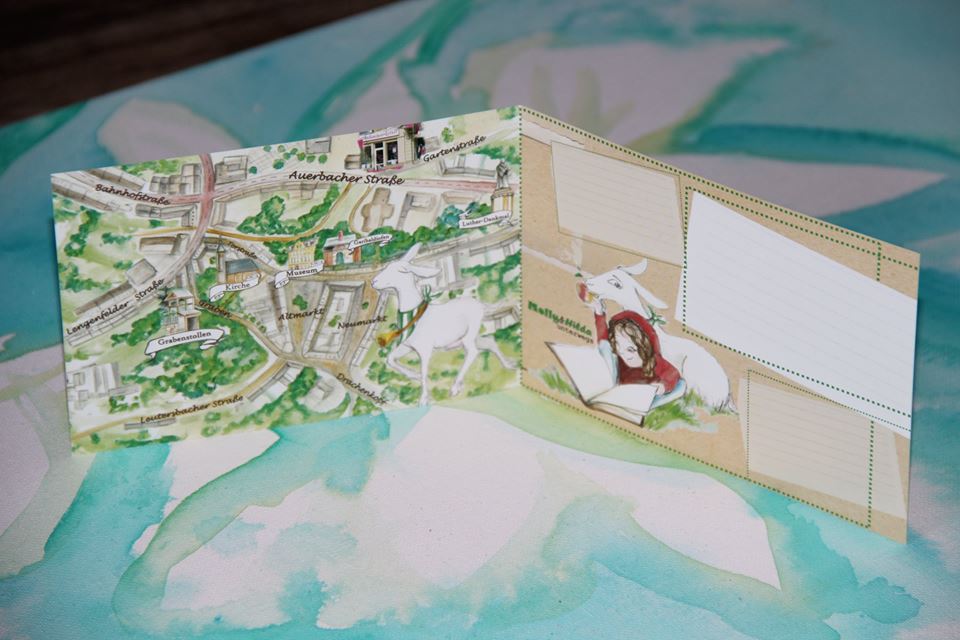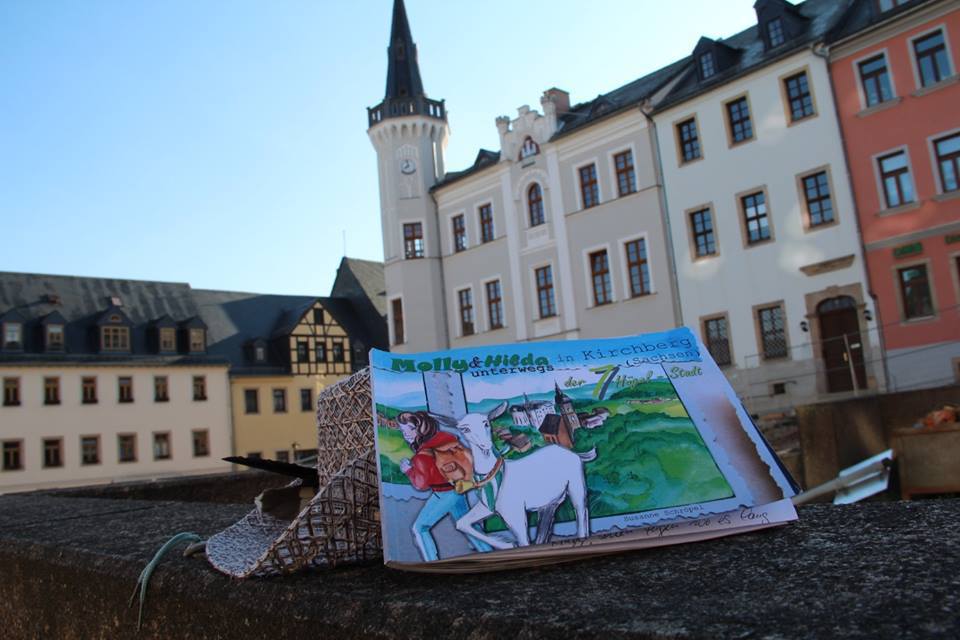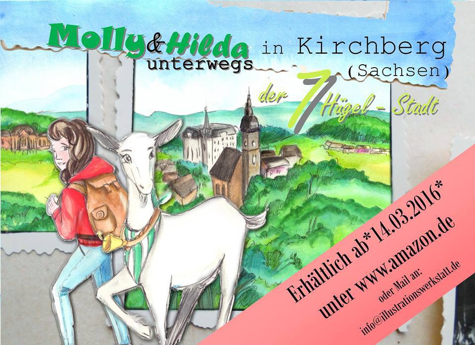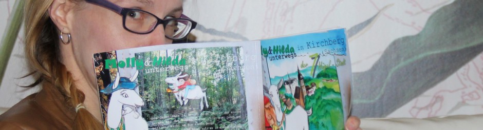 Was hinein soll, das stand für mich schon vor 2 Jahren fest, als ich wusste, dass ich dieses Projekt angehen wollte. Nur das WIE war immer die Frage. Es sollte interessant und kurzweilig werden für große und kleine Leute. Denn nichts ist schrecklicher als ein „Dahingebrabbel“ von historischen Fakten. Es stand also fest, ich brauche Hilfe auf diesem Weg und der erschien in Form von Hilda und Molly irgendwann auf meinem Zeichenblock. Die quirlige Zwergin und die neugierige Ziegendame werden mich auf der Suche nach den Geheimnissen und Offensichtlichkeiten meiner Heimatstadt begleiten und sicher hier und da für Überraschungen sorgen.