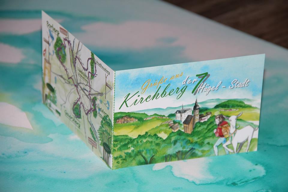 Zu Buch gesellten sich auch bald die Klapppostkarten mit Stadt und Hügelplan.