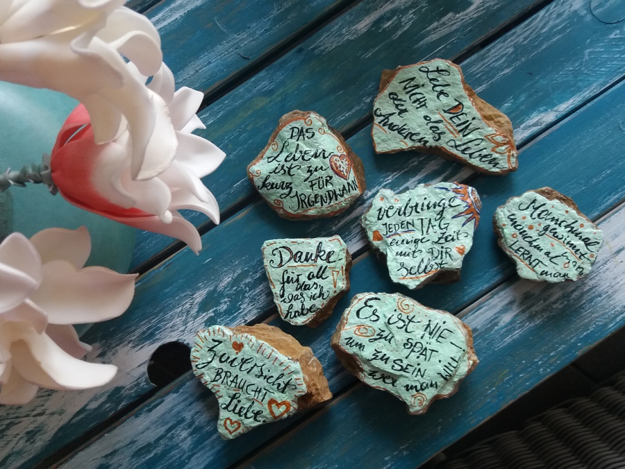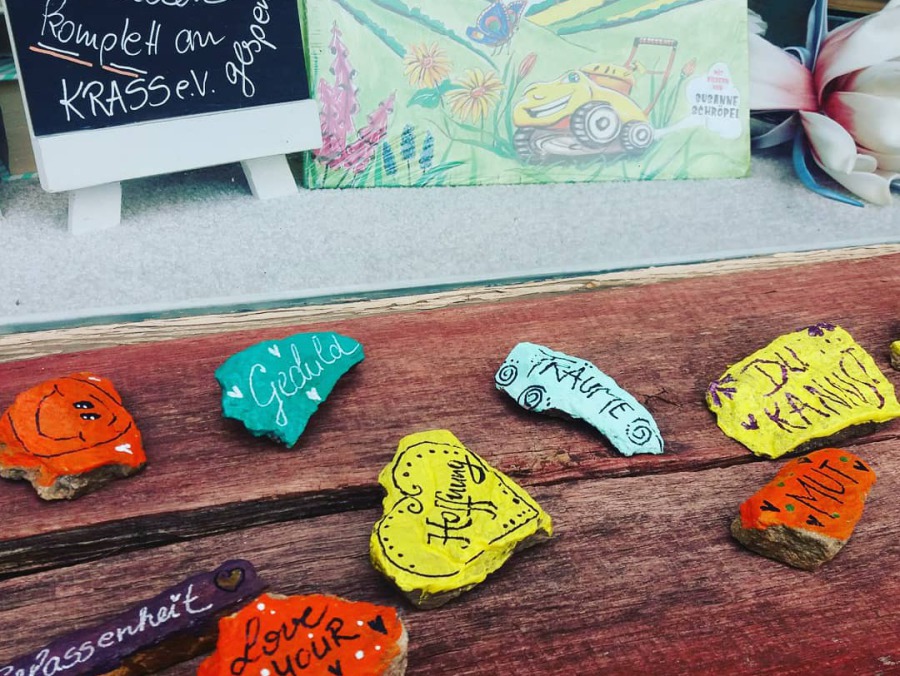 Montag und Dienstag gibt es immer einen Vorrat an flauschigen Mutmachsprüchen die auf den Galeriefensterbrettern abgeholt werden können. Von dort aus dürfen sie weiterwandern oder verschenkt werden, auf dass diese den Findern ein Lächeln und etwas Optimismus schenken.